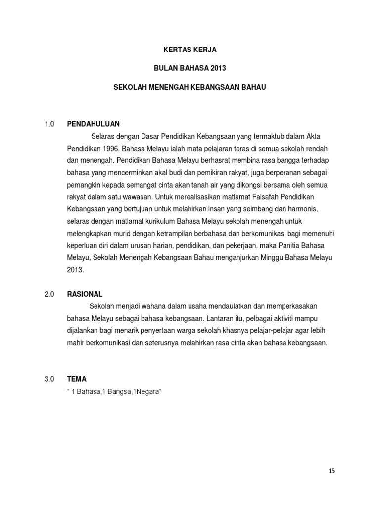 Kertas Kerja Minggu Bahasa Melayu Sumber Pendidikan
