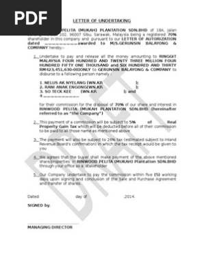 Letter Of Undertaking Rindwood Mukah 1 Taxes Taxation