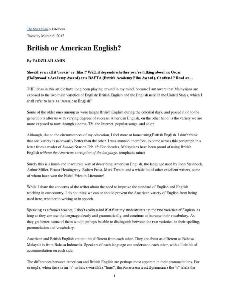 Fate Is In Your Own Hands British And American English And Their Influence Towards Evolvement Of Malaysian English