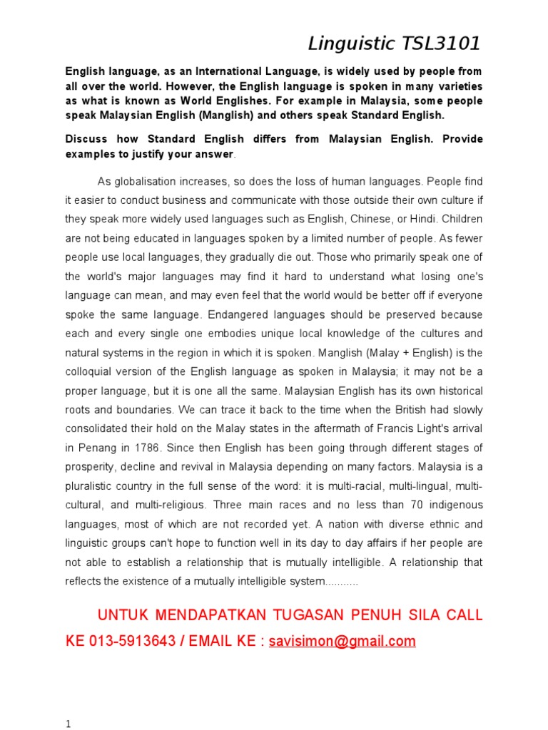 The Differences Between Malaysian English And Standard English
