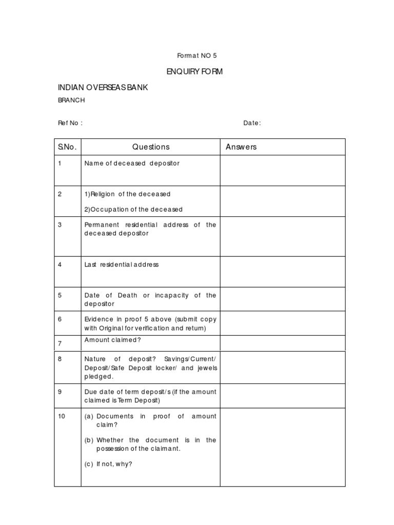 Enquiry Form Indian Overseas Bank Virtue Common Law