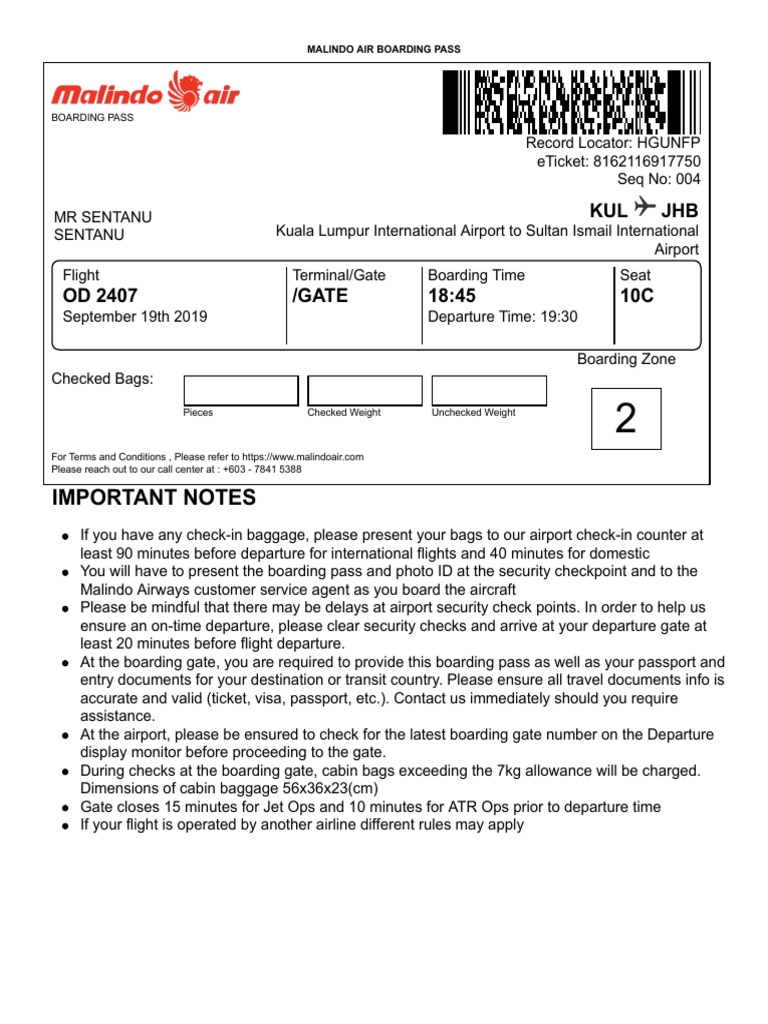 Malindo Air Web Check In And Boarding Pass