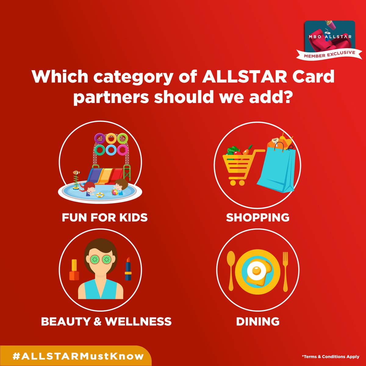 Mbo Cinemas On Twitter Which Category Of Allstar Card Partners Would You Like To See More React With Emojis Sign Up Now As An Allstar At Https T Co J7gg9ithwu To